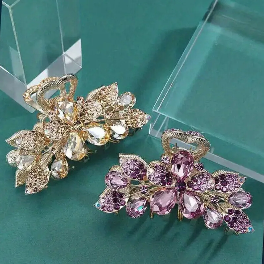 Beautiful, Sparkly Rhinestone Flowers Trendy Hair Barrettes